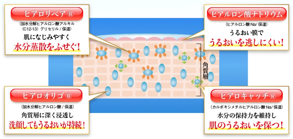 効果の違う4種類のヒアルロン酸を黄金バランスでブレンド